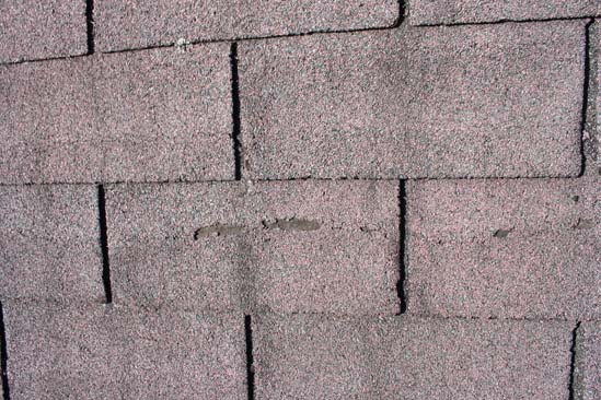 On peut voir une section de bardeau où le gravier est endommagé