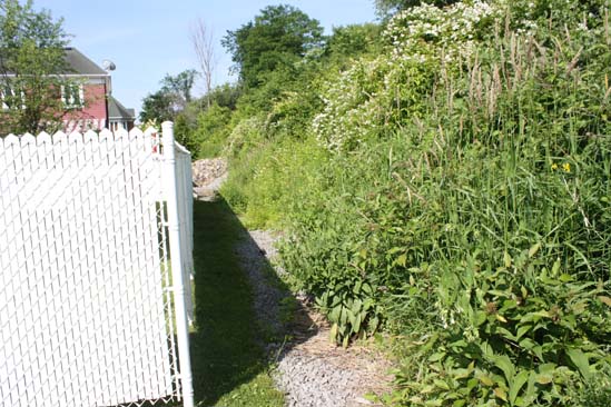 Nous pouvons voir une forte pente à droite qui se dirige vers les bâtiments