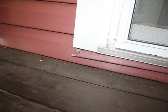 Nous pouvons voir que le revêtement au coin de la porte patio est cassé et mal fixé