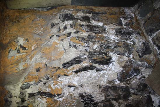 On peut voir des traces blanches sur les joints de mortier de la fondation de pierre