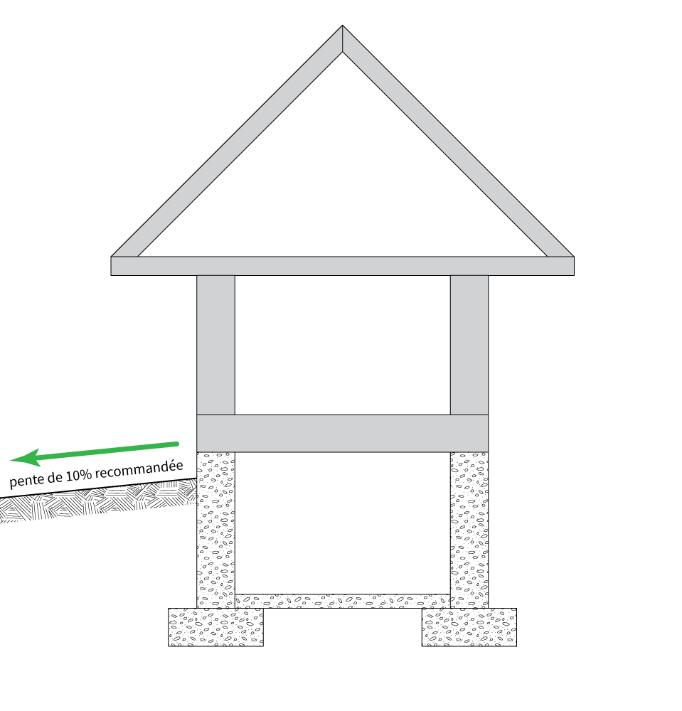 Toute accumulation d’eau à proximité des fondations est à éviter. Puisque le sol possède une limitte